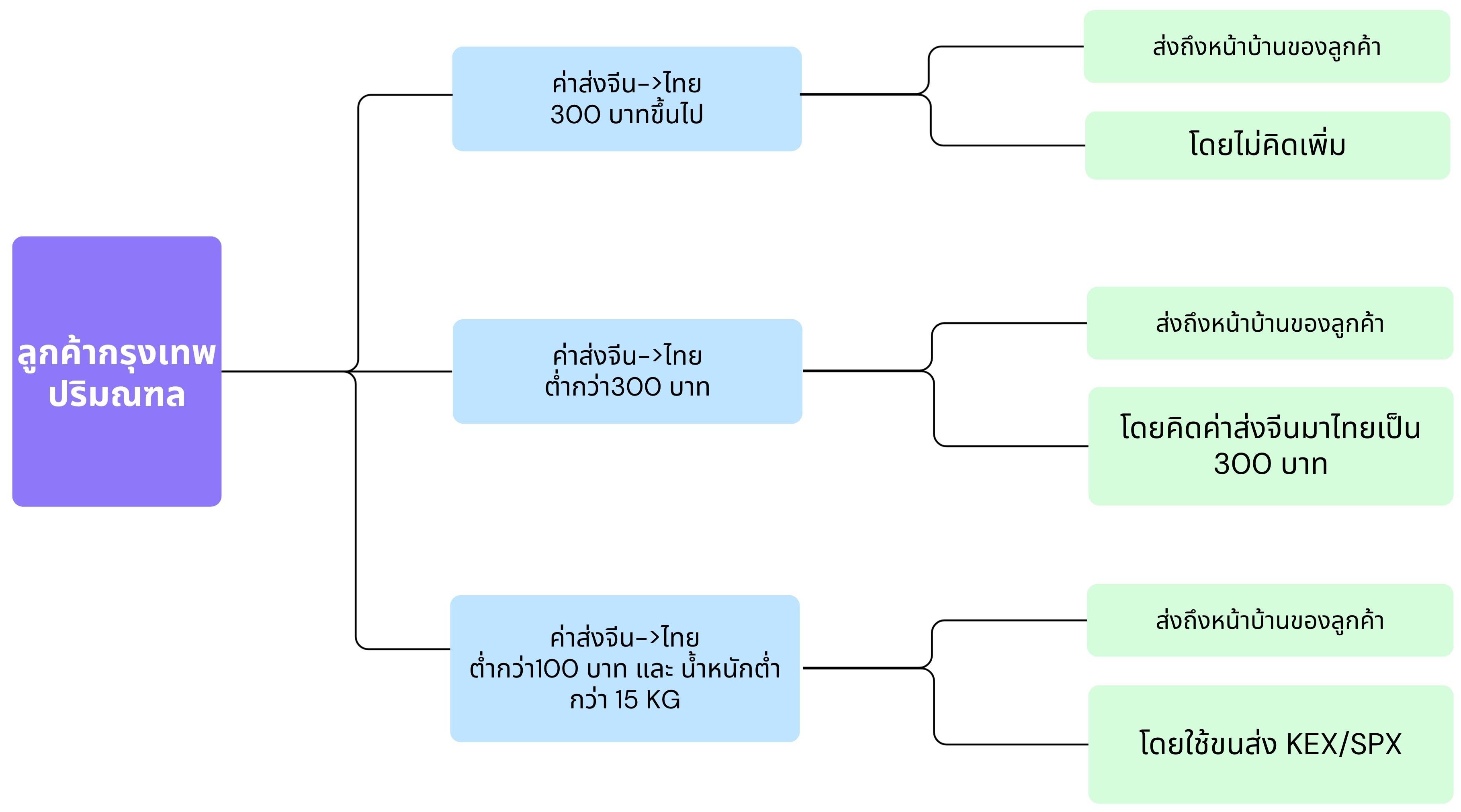 B.ถ้าส่งผ่าน Kerry: ค่าส่งทั้งหมดจะเท่ากับ ค่าส่งจากจีนมาไทย + ค่าส่ง Kerry ในประเทศ (100-450 บาท)